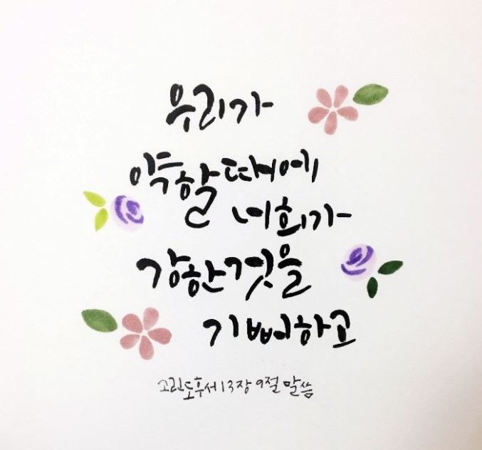 - 우리가 약할 때에 너희가 강한 것을 기뻐하고 또 이것을 위하여 구하니 곧 너희가 온전하게 되는 것이라