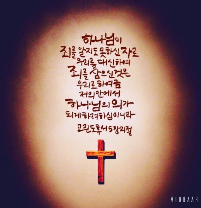 - 하나님이 죄를 알지도 못하신 이를 우리를 대신하여 죄로 삼으신 것은 우리로 하여금 그 안에서 하나님의 의가 되게 하려 하심이라