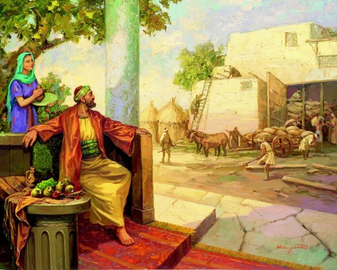 16. 또 비유로 그들에게 말하여 이르시되 한 부자가 그 밭에 소출이 풍성하매