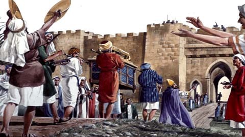 - 예루살렘 성벽을 봉헌하게 되니 각처에서 레위 사람들을 찾아 예루살렘으로 데려다가 감사하며 노래하며 제금을 치며 비파와 수금을 타며 즐거이 봉헌식을 행하려 하매