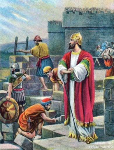 - 이에 우리가 성을 건축하여 전부가 연결되고 높이가 절반에 이르렀으니 이는 백성이 마음 들여 일을 하였음이니라