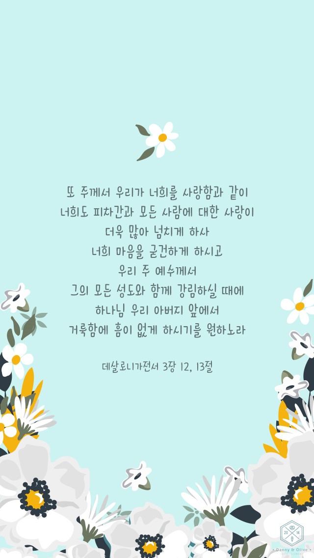 - 너희 마음을 굳건하게 하시고 우리 주 예수께서 그의 모든 성도와 함께 강림하실 때에 하나님 우리 아버지 앞에서 거룩함에 흠이 없게 하시기를 원하노라