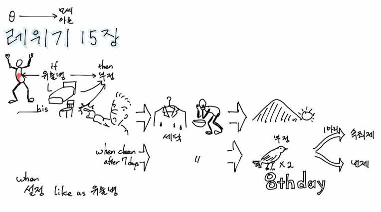 - 유출병이 있는 자는 그의 유출이 깨끗해지거든 그가 정결하게 되기 위하여 이레를 센 후에 옷을 빨고 흐르는 물에 그의 몸을 씻을 것이라 그러면 그가 정하리니