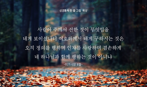 - 사람아 주께서 선한 것이 무엇임을 네게 보이셨나니 여호와께서 네게 구하시는 것은 오직 정의를 행하며 인자를 사랑하며 겸손하게 네 하나님과 함께 행하는 것이 아니냐