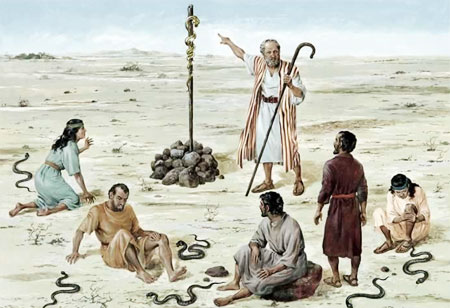 - 모세가 놋뱀을 만들어 장대 위에 다니 뱀에게 물린 자가 놋뱀을 쳐다본즉 모두 살더라
