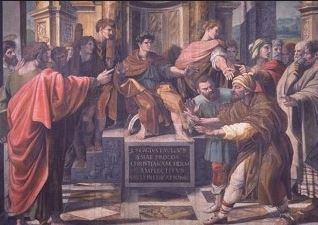 - 회당의 모임이 끝난 후에 유대인과 유대교에 입교한 경건한 사람들이 많이 바울과 바나바를 따르니 두 사도가 더불어 말하고 항상 하나님의 은혜 가운데 있으라 권하니라