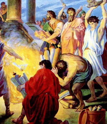 - 또 마술을 행하던 많은 사람이 그 책을 모아 가지고 와서 모든 사람 앞에서 불사르니 그 책 값을 계산한즉 은 오만이나 되더라