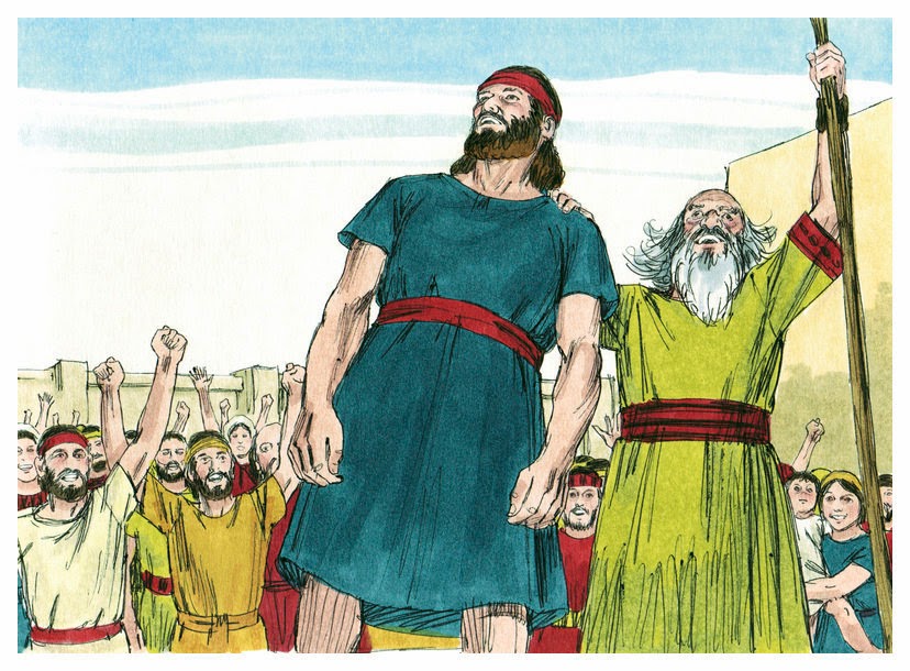 - 그들이 달려 가서 거기서 그를 데려오매 그가 백성 중에 서니 다른 사람보다 어깨 위만큼 컸더라