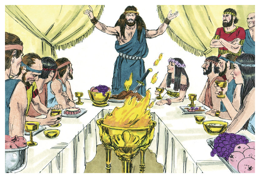 - 삼손의 아버지가 여자에게로 내려가매 삼손이 거기서 잔치를 베풀었으니 청년들은 이렇게 행하는 풍속이 있음이더라