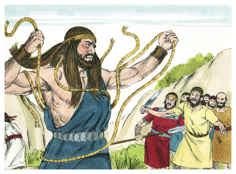 여호와의 계획대로 이스라엘을 위해 싸웠으나 도리어 자기 백성에게 쫓기게 된 삼손은 동족과 싸울 수 없었다. 그래서 그는 잡히기로 결심했다.