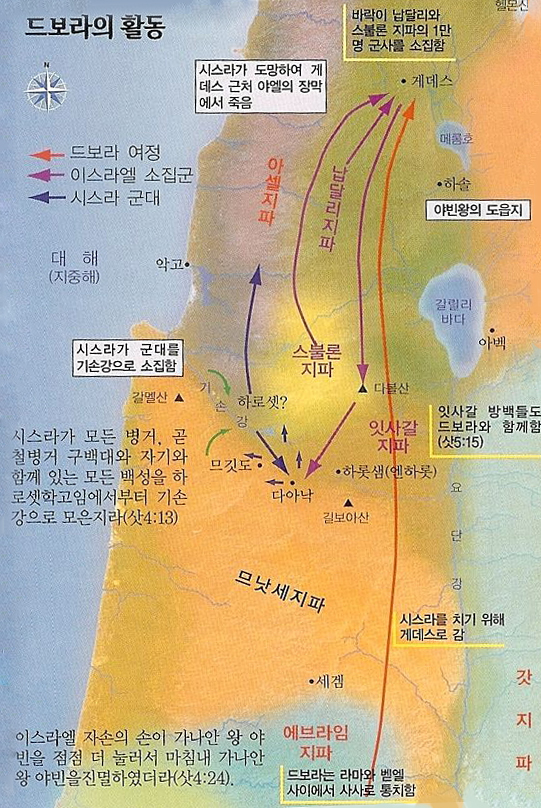- 이 날에 드보라와 아비노암의 아들 바락이 노래하여 이르되