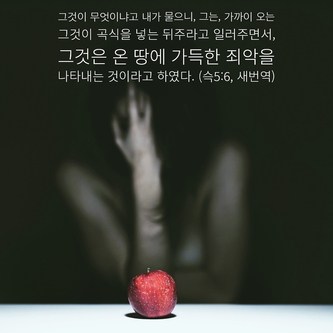 - 그가 이르되 이는 악이라 하고 그 여인을 에바 속으로 던져 넣고 납 조각을 에바 아귀 위에 던져 덮더라