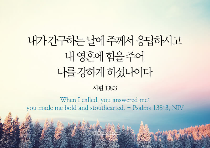 - 내가 간구하는 날에 주께서 응답하시고 내 영혼에 힘을 주어 나를 강하게 하셨나이다