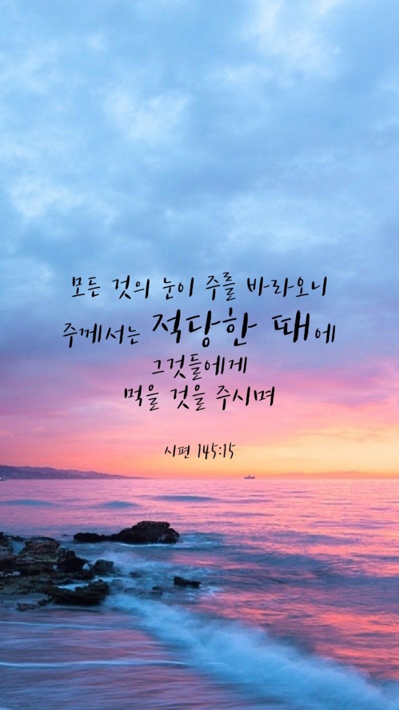 - 모든 사람의 눈이 주를 앙망하오니 주는 때를 따라 그들에게 먹을 것을 주시며