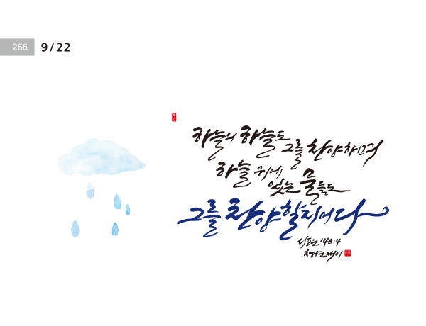 - 하늘의 하늘도 그를 찬양하며 하늘 위에 있는 물들도 그를 찬양할지어다