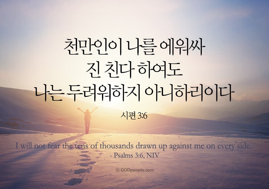 6. 천만인이 나를 에워싸 진 친다 하여도 나는 두려워하지 아니하리이다