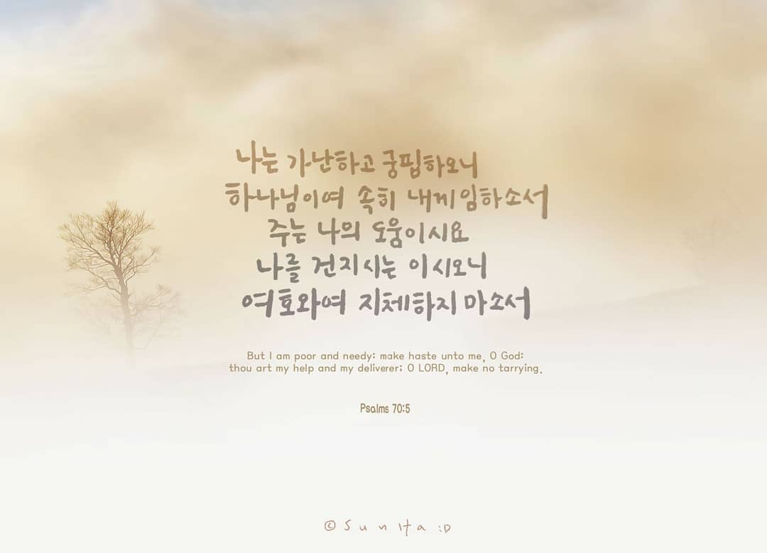 - 나는 가난하고 궁핍하오니 하나님이여 속히 내게 임하소서 주는 나의 도움이시요 나를 건지시는 이시오니 여호와여 지체하지 마소서