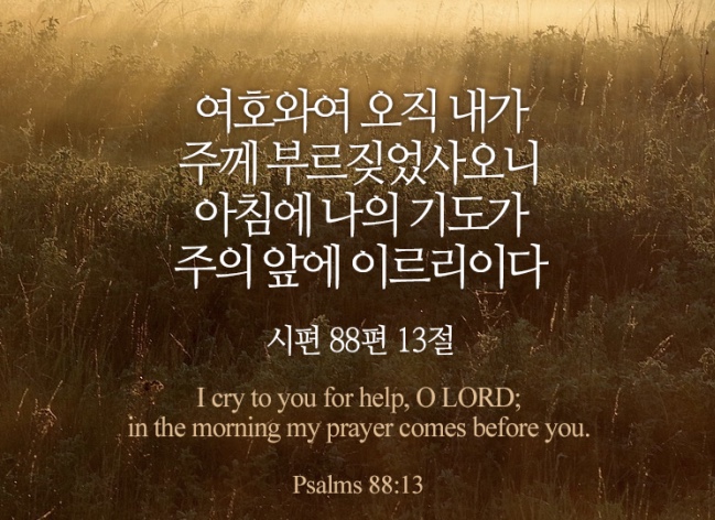 13. 여호와여 오직 내가 주께 부르짖었사오니 아침에 나의 기도가 주의 앞에 이르리이다