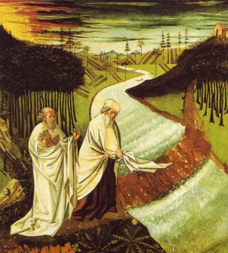 - 엘리야가 겉옷을 가지고 말아 물을 치매 물이 이리 저리 갈라지고 두 사람이 마른 땅 위로 건너더라