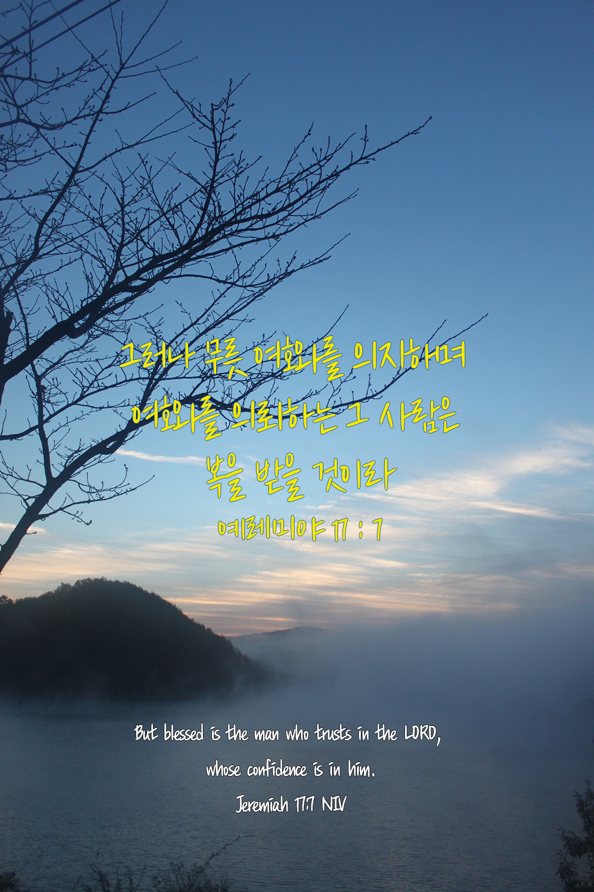 7. 그러나 무릇 여호와를 의지하며 여호와를 의뢰하는 그 사람은 복을 받을 것이라