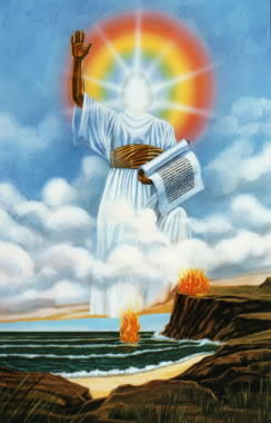 - 내가 본 바 바다와 땅을 밟고 서 있는 천사가 하늘을 향하여 오른손을 들고