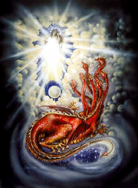 4. 그 꼬리가 하늘의 별 삼분의 일을 끌어다가 땅에 던지더라 용이 해산하려는 여자 앞에서 그가 해산하면 그 아이를 삼키고자 하더니