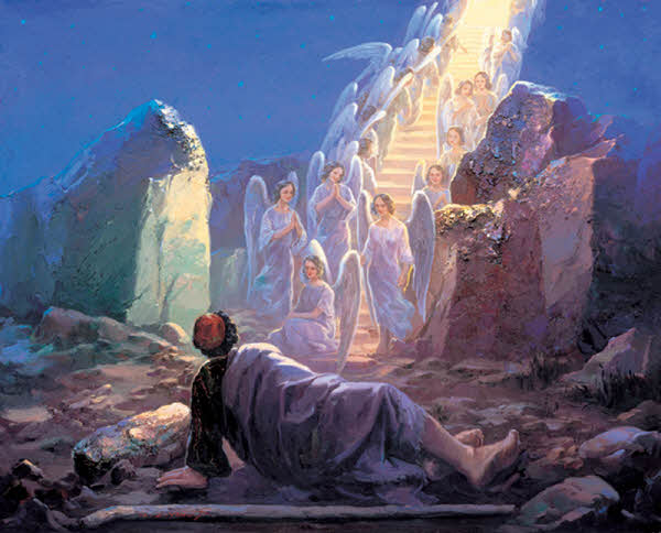 12 꿈에 본즉 사닥다리가 땅 위에 서 있는데 그 꼭대기가 하늘에 닿았고 또 본즉 하나님의 사자들이 그 위에서 오르락 내리락 하고