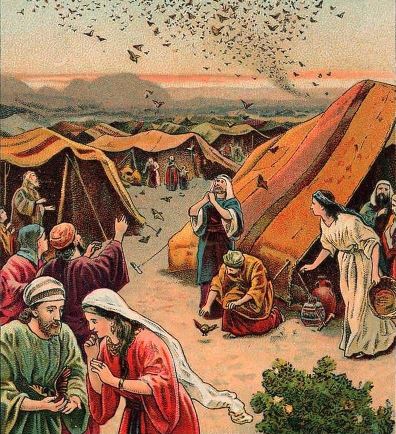 13 저녁에는 메추라기가 와서 진에 덮이고 아침에는 이슬이 진 주위에 있더니