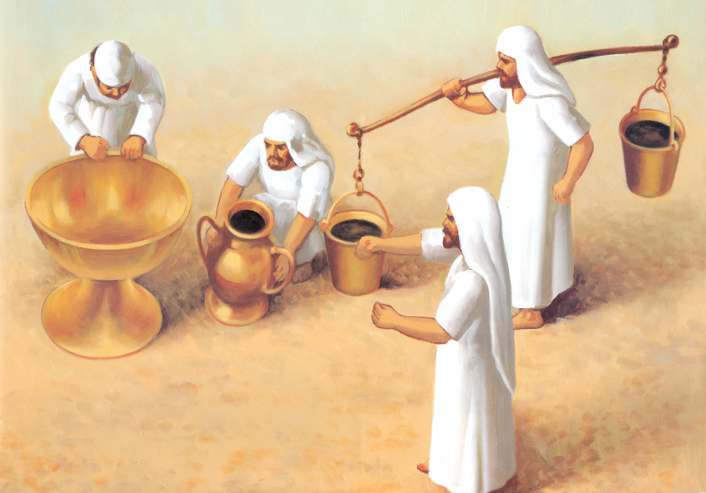 18 너는 물두멍을 놋으로 만들고 그 받침도 놋으로 만들어 씻게 하되 그것을 회막과 제단 사이에 두고 그 속에 물을 담으라