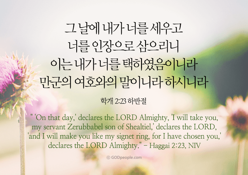 - 만군의 여호와가 말하노라 스알디엘의 아들 내 종 스룹바벨아 여호와가 말하노라 그 날에 내가 너를 세우고 너를 인장으로 삼으리니 이는 내가 너를 택하였음이니라 만군의 여호와의 말이니라 하시니라