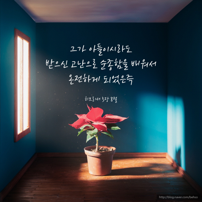 - 그가 아들이시면서도 받으신 고난으로 순종함을 배워서